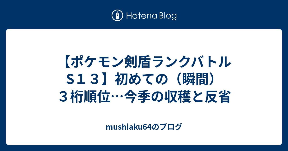 ポケモン剣盾ランクバトルs13 初めての 瞬間 3桁順位 今季の収穫と反省 Mushiaku64のブログ